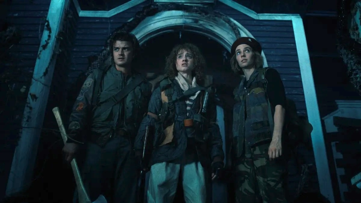 Eddie and Dustin are in the Upside-Down distracting Vecna's demobats to allow Steve, Nancy, and Robin safe passage into the Creel house.